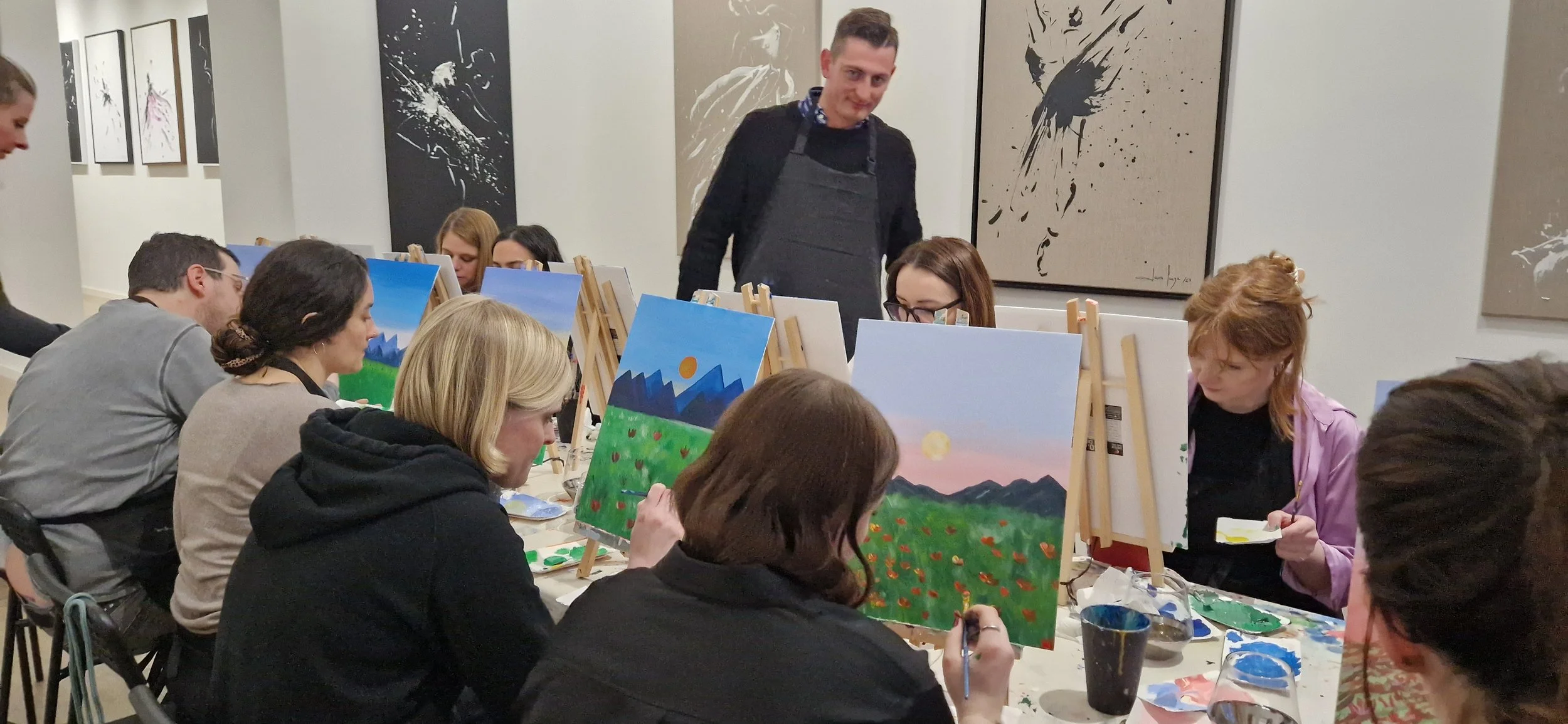 Antwort: Ein Firmen-Malkurs ist ein kreativ begleitetes Teamevent, bei dem Kolleg:innen gemeinsam malen und dadurch Teamgefühl und Kommunikation stärken. Bei ART-LI in München findet das in einer Mischung aus Kursatelier und Kunstgalerie statt, was dem Event eine besondere Atmosphäre gibt.