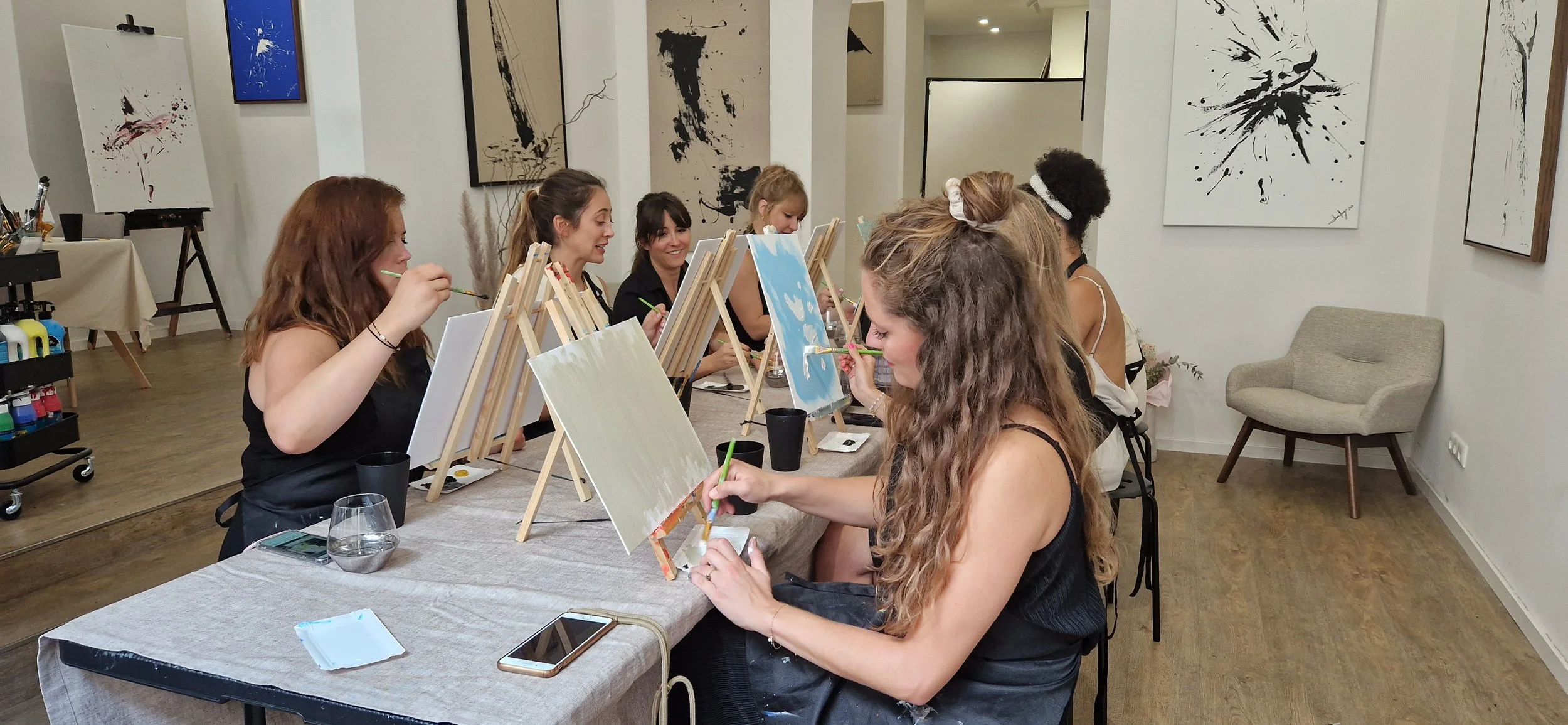 Antwort: Ja. ART-LI bietet neben Teamevents auch Sip & Paint/Malpartys sowie Acryl- und Textur-Workshops für Anfänger an. Außerdem gibt es kreative Formate für JGA, Geburtstage und Gruppen, je nachdem, was ihr sucht.