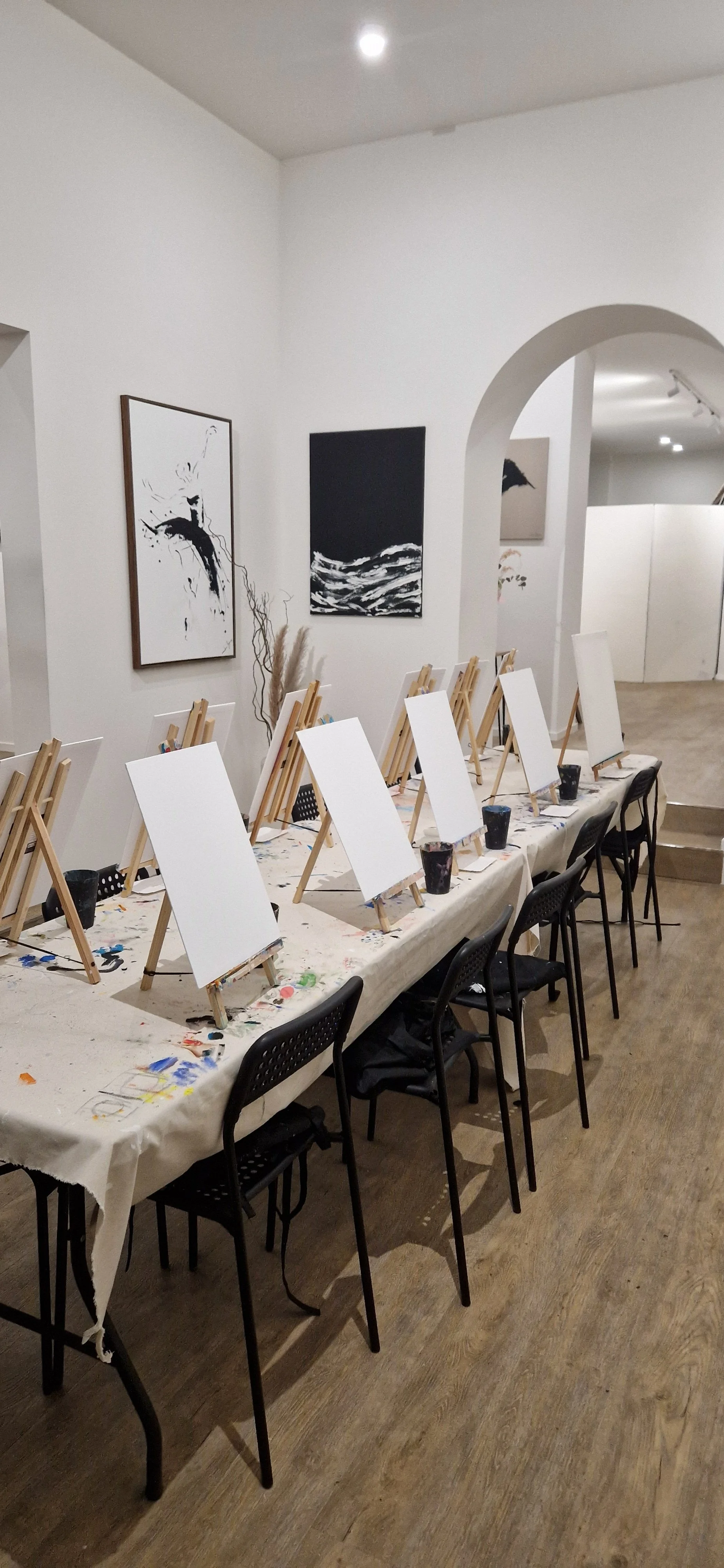 Du malst in einer Umgebung, in der Kunst zuhause ist. Das gibt sofort eine andere Energie: inspirierend, warm und „erlaubend“. Du spürst, dass es hier nicht um Bewertung geht, sondern um Ausdruck.